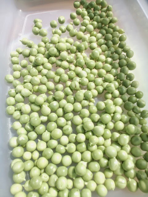 Leider war das Ergebnis ganz schön mager. Nächstes Jahr brauchen die Erbsen einen besseren Platz, dann reicht es vielleicht auch für ein Essen ohne tiefgefrorene Ergänzung.